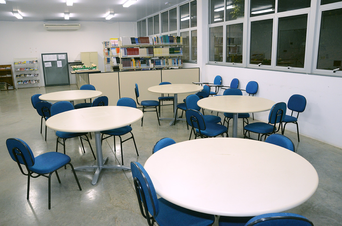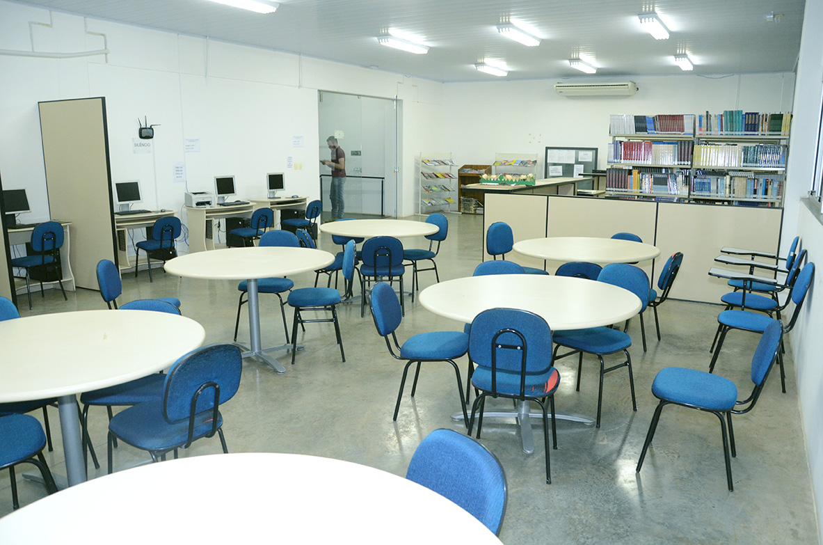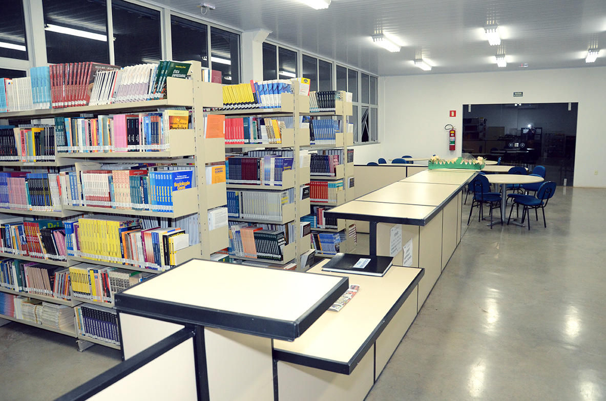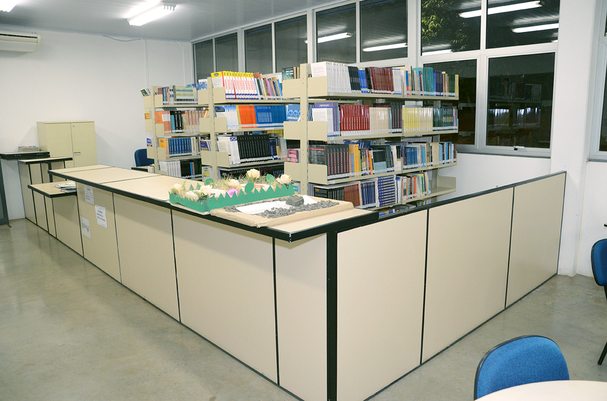 A biblioteca ocupa espaço total de 144², onde estão instalados o acervo, a sala de leitura e a área de trabalho para o atendimento e o processamento técnico dos livros.