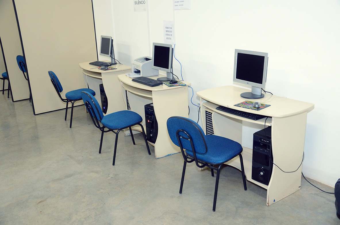 Existe uma área destinada ao estudo individual, em grupo que possui 4 (quatro) terminais de computadores para pesquisas dos usuários e 6 (cinco) mesas, com 4 (quatro) cadeiras cada, para estudos individuais ou em grupo. O espaço tem capacidade para acomodar 24 pessoas, sendo 4 (quatro) nos terminais e 20 nas mesas de estudo.